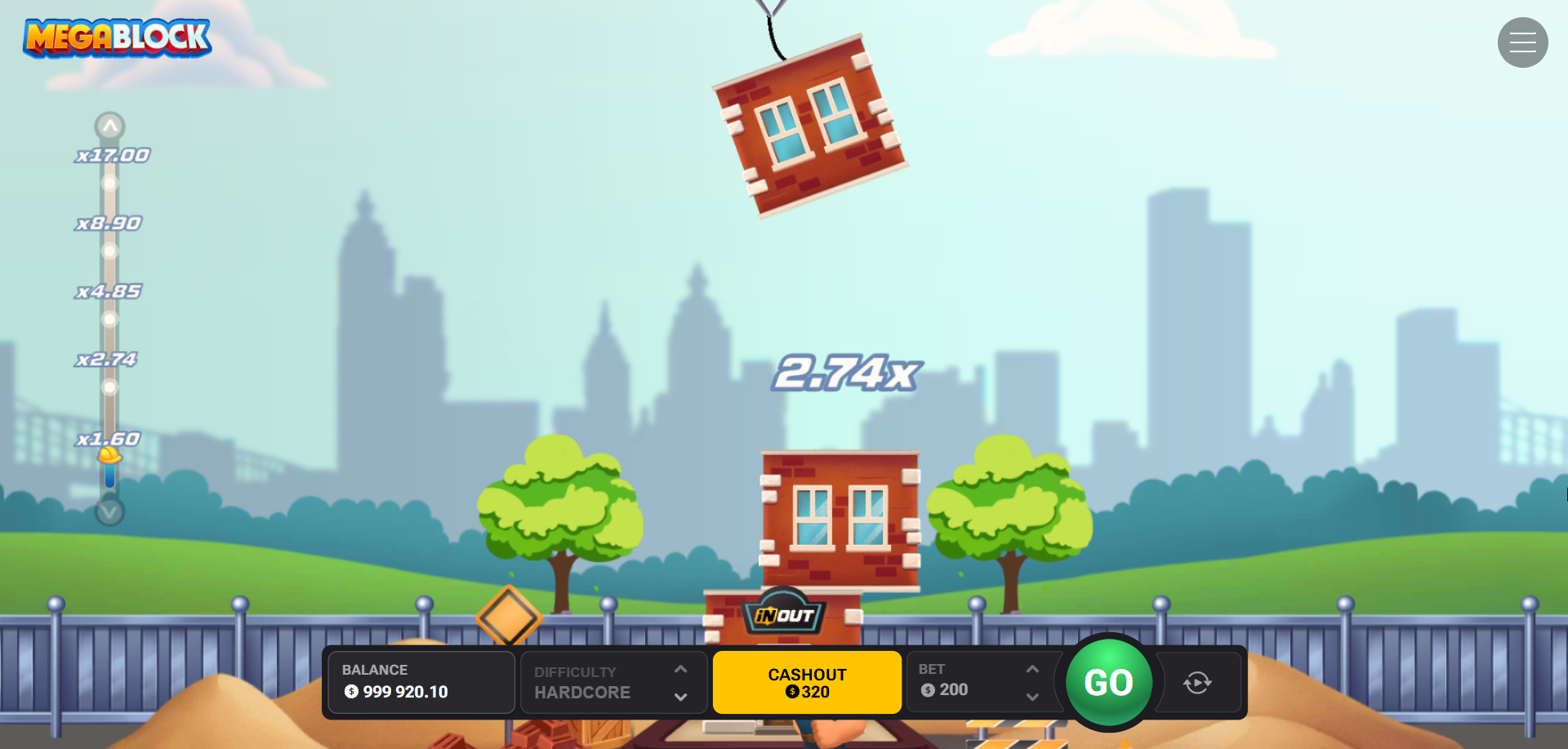 MegaBlock est un crash game singulier où l’objectif consiste à construire une tour constituée de blocs mobiles, à placer parfaitement au bon moment. Plus la tour grandit, plus le multiplicateur de gains augmente, et la difficulté progresse également. Le jeu demande à la fois précision manuelle et sens du timing.