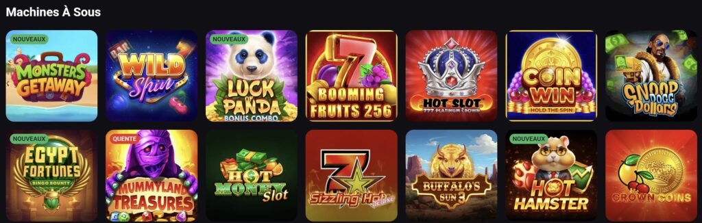 - 🎰 Machines à sous : des milliers de titres incluant jackpots, thèmes variés et bonus buy.