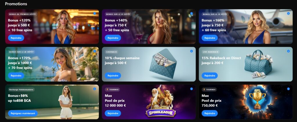 Ici, pas de cadeau de bienvenue « traditionnel », mais plutôt une suite de bonus sur les quatre premiers dépôts, pour accompagner en douceur les nouveaux membres sans prendre de risques excessifs. Le montant minimum nécessaire à chaque dépôt reste accessible, ouvrant la porte aussi bien aux débutants prudents qu’aux profils intermédiaires, favorisant ainsi une expérience utilisateur positive.