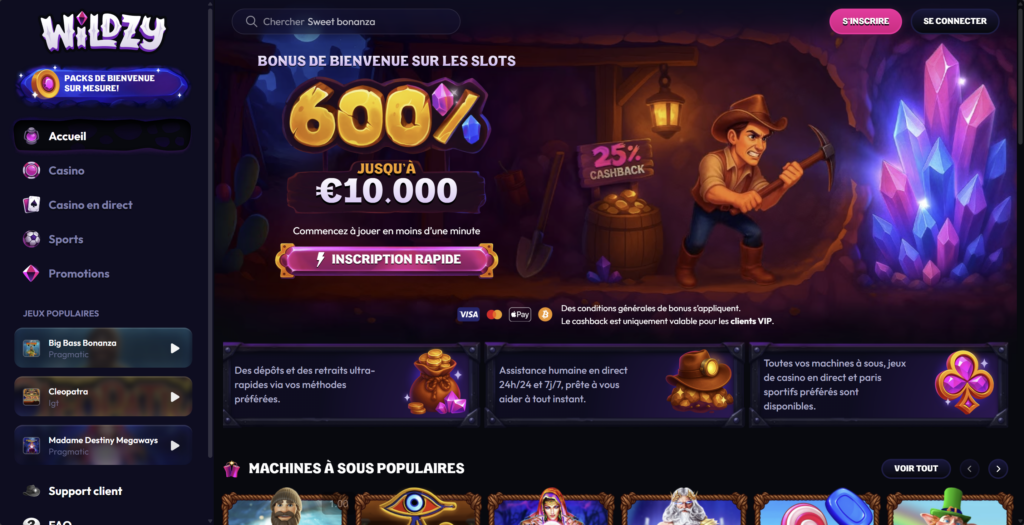 Wildzy Casino coche de nombreuses cases : accessibilité mobile, rapidité des paiements, support continu, bonus massifs et licences de confiance. Sa sélection de jeux répond surtout aux attentes des amateurs de machines à sous, tandis que le live casino ou les paris sportifs viennent compléter une ludothèque tournée vers la diversité.